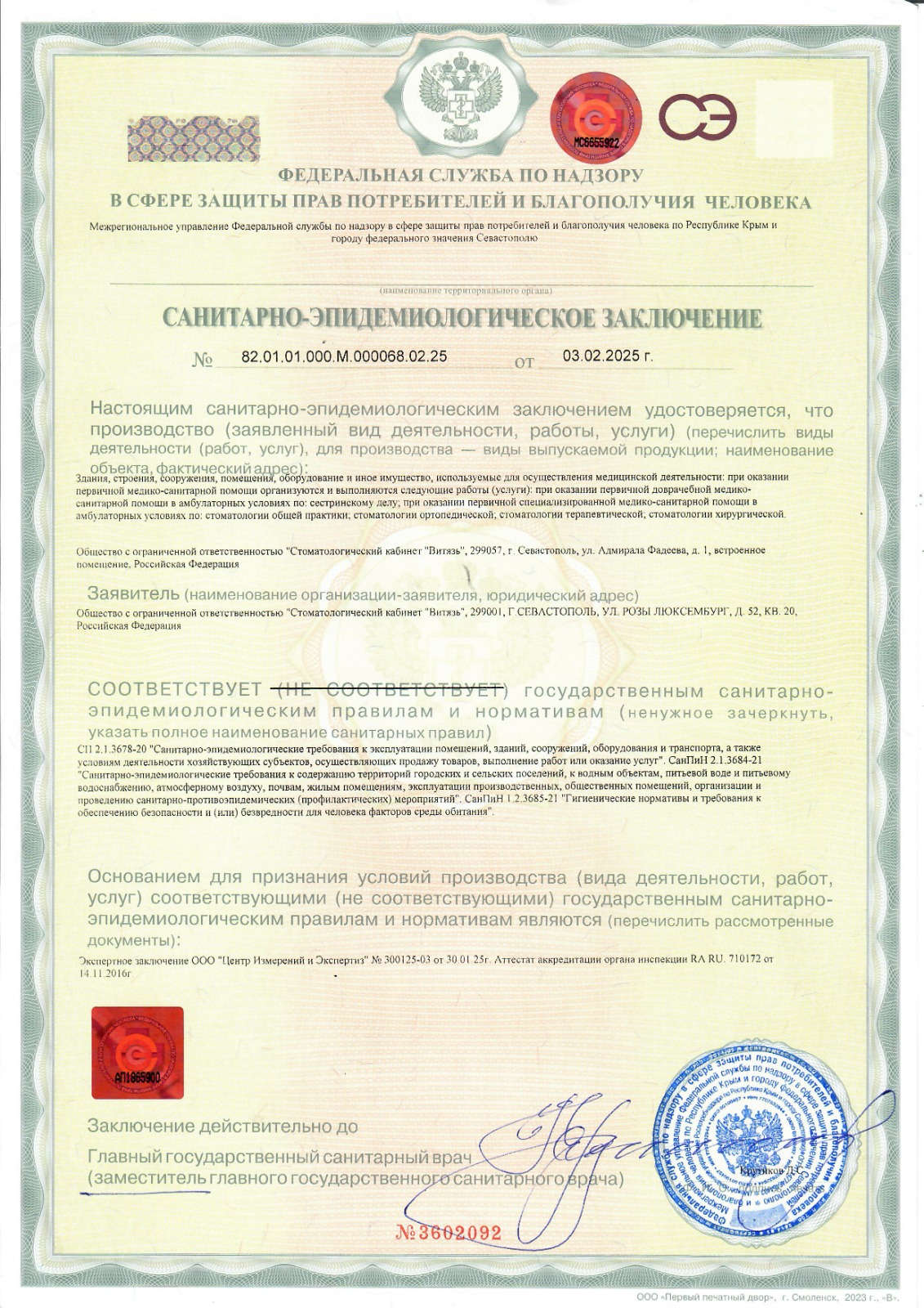 ООО СК «Витязь» НЕ ОКАЗЫВАЕТ медицинских услуг стоматологического профиля в рамках программы государственных гарантий бесплатного оказания гражданам медицинской помощи и территориальной программы государственных гарантий бесплатного оказания гражданам медицинской помощи.